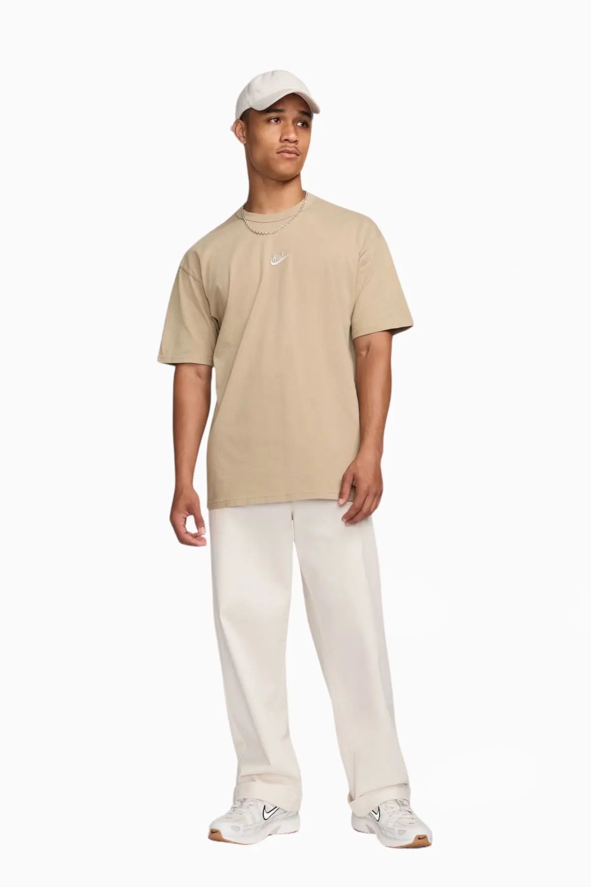Футболка Nike Sportswear Premium Essentials выполнена в классическом бежевом цвете, который легко сочетается с любыми другими цветами и стилями одежды.